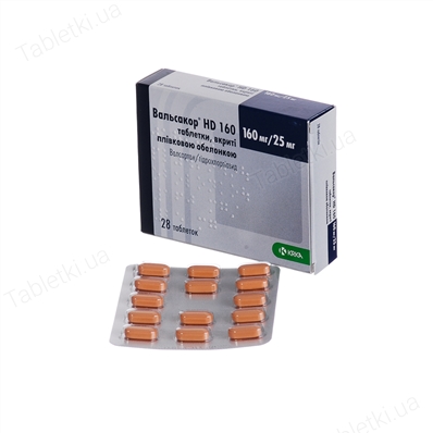 Вальсакор® НД160, таблетки, 160 мг + 25 мг (Валсартан, Гидрохлоротиазид)
