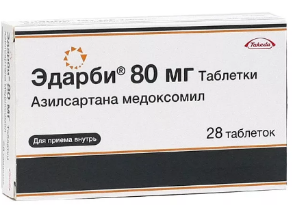 Максимальная суточная доза составляет 80 мг. В случае неадекватного контроля АД в монотерапии препаратом Эдарби возможно его одновременное применение с другими гипотензивными средствами, включая диуретики (хлорталидон и гидрохлоротиазид) и дигидропиридиновые блокаторы «медленных» кальциевых каналов (амлодипин).
